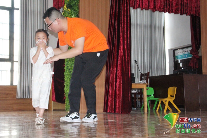 通过支教团队合作演出的情景剧,午晨旭将“安全”引入课堂。剧中,7名成员分别遇到的拐卖、溺水、交通、饮食、火灾等安全事故,让同学们认识到了身边存在的安全隐患。