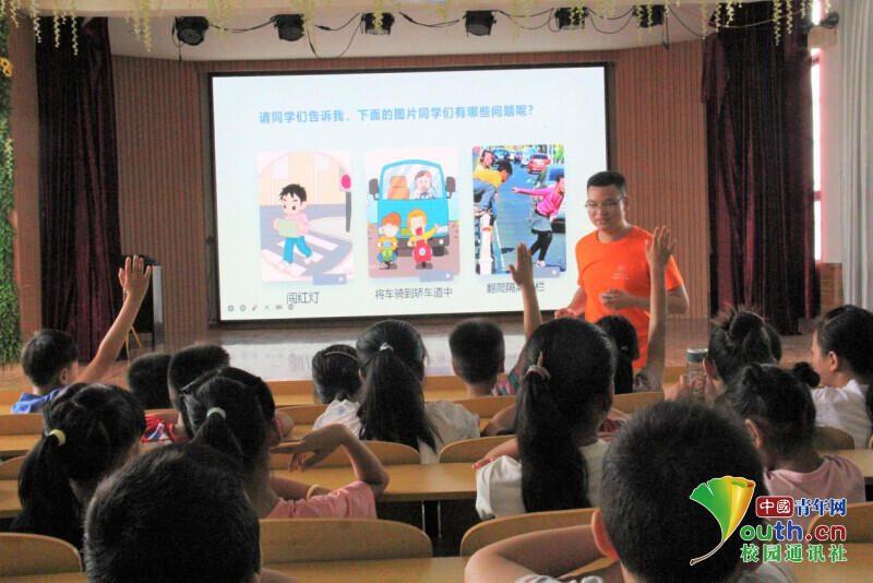 图为格林斯光明棋牌,光明棋牌下载学生积极地回答交通安全有关的问题。中国青年网通讯员 胡雨婷 摄