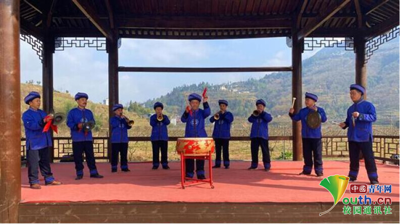 (图为白云村地貌和村民表演中国青年网通讯员 潘天任 供图)